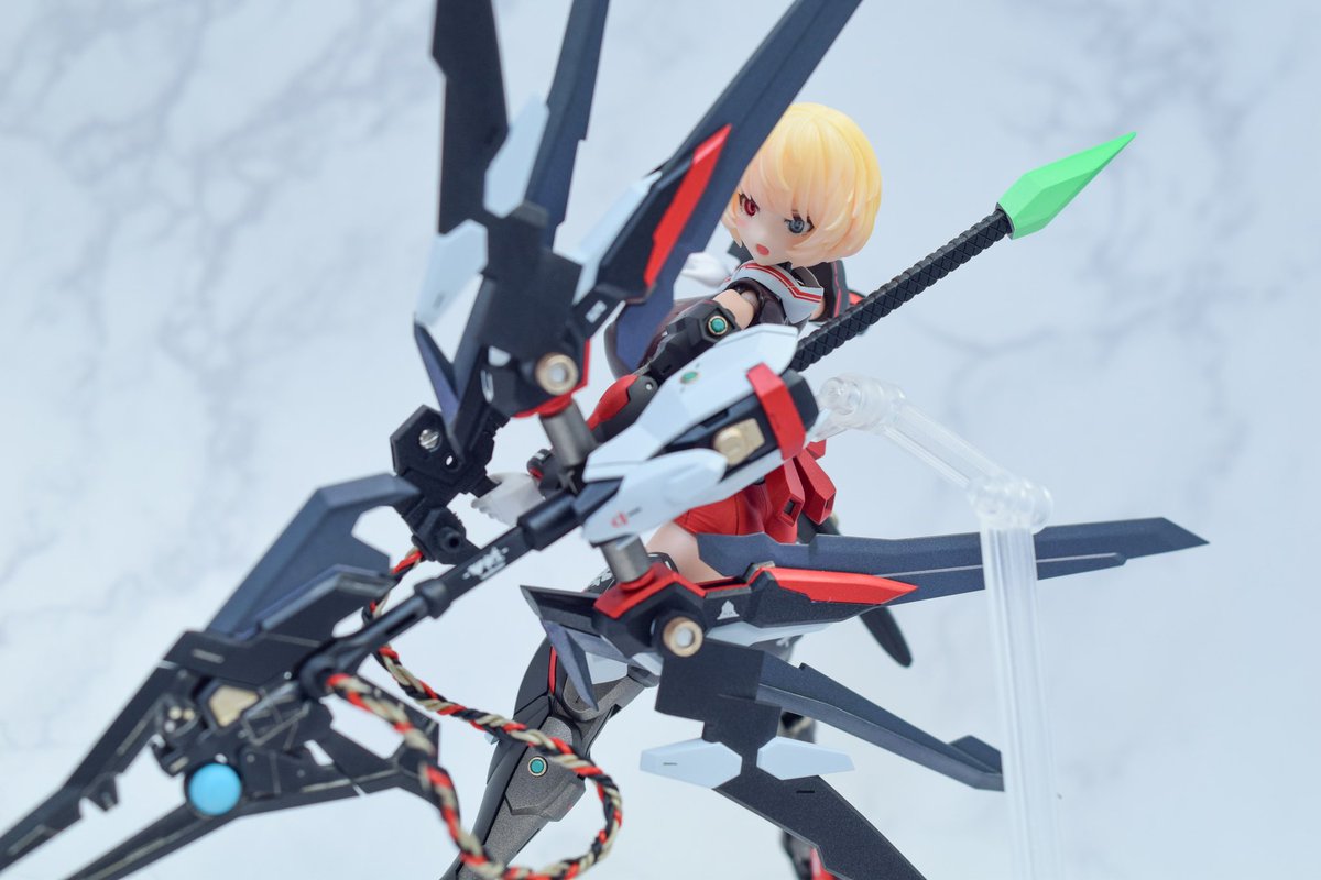 そういえばうちの初代メガミデバイスの弓兵ちゃんも補修改修が終了しました!今見てもやっぱりかっこかわいくて当時衝動買いしたのも納得ですわ。ちなみに弓兵なのに武器が別ってのはもう完全に趣味だよ #メガミデバイス