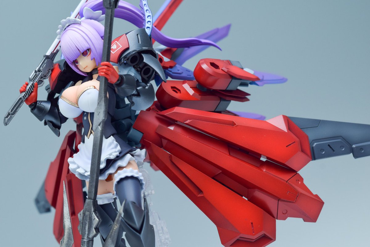 「重装メイド Nine Tail」 新作でーす!屋敷の最終防衛ラインを務める重装メイドです! 「立ち去りなさい。これより先は不可侵領域です。」 ★リプ欄に使用したキットの紹介など続きますので見てねー!! #メガミデバイス
