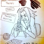#inktober2019 day 10: Pattern. @Htg17_arts 's character Baker taking up some anger management with knitting. Look at the success thus far~ He left the party yesterday. Me and my own char will miss him and hope he's doing okay. #inktober #DnD #dnd5e #dungeonsanddragons
