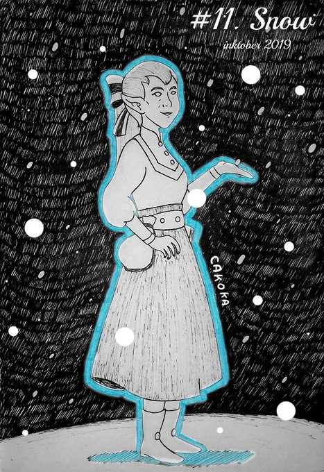 I'm still behind due to my health but here is #Inktober2019 day 11: Snow. @Htg17_arts 's new character Lucia now that Baker left. She's really sweet! Look at that cheat-ish digitally added snow~ I do apologize. #inktober #DnD #dnd5e #wizard #dungeonsanddragons