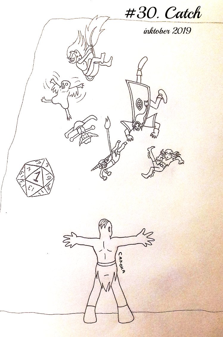 #inktober day 30: Catch This never happened but I wish it would have. This is how true TPKs happen~ Characters belong to @Zelujin @Htg17_arts @dravatti @floofsqueak @Cellebellers and the triton is mine. #DnD #dungeonsanddragons #DnD5e #inktober2019