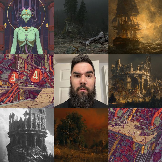 Hey #PortfolioDay ! Here's a bunch of my art 🤘 be sure to check out the thread below for a bunch more of what i do!! I focus on making SciFI and Fantasy scenes using a variety of mediums and styles! This first section is a bunch of my Arnold stylized scenes!