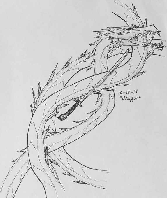 Day 12 of inktober is dragon, decided to draw Tatsumasa, the Dragon’s Fang, a magic the gathering card, along with a sort of water dragon in the background #inktober #inktoberday12 #Inktober2019