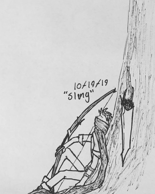 Day 19 of inktober is Sling, a bow is a little far off from that but close enough for me, so I drew an OC of mine who uses a bow #Inktober #inktober2019 #Inktoberday19