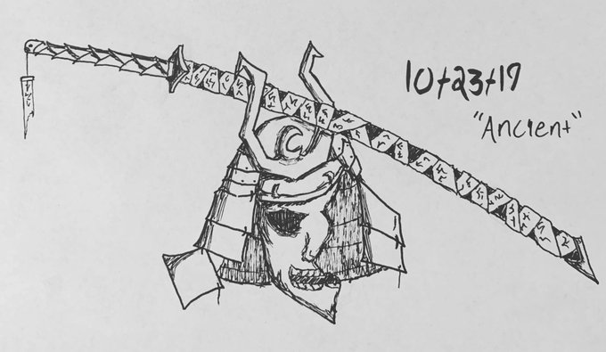 Day 23 is ancient, I decided to draw a sword from the beginning, but eventually decided on an overall samurai style for the whole thing #inktober #inktoberday23 #Inktober2019