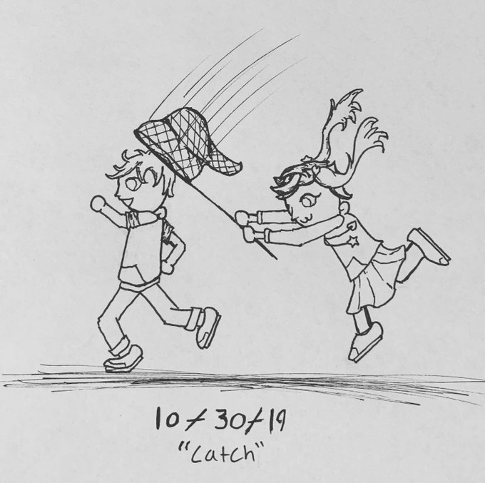Day 30 of inktober, I had friends help me with ideas so I drew animal crossing styled characters, one “catching” the other with a net, these are based off of one of my OCs and @iAcerjs OC #Inktober #Inktober2019 #inktoberday30