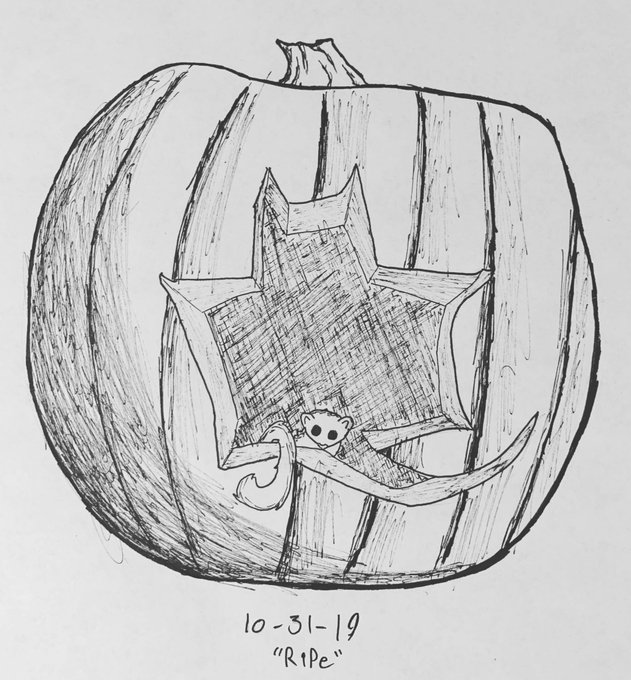 Day 31 of inktober is ripe, everyone was doing pumpkins so I drew the pumpkin that @HannahPBear made in @TheFrostPrime’s pumpkin carving video, with Baby the sugar glider inside #inktober #inktoberday31 #inktober2019