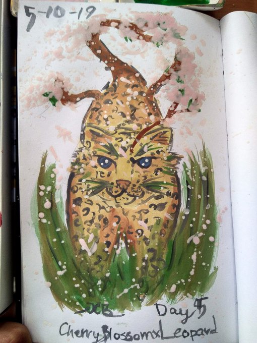 Inktober uwu Day 5 y 6 @keymonster Day 5- Cherry Blossom x Leopard Day 6- Carnation x Domestic Dog #inktober #Inktober2019 #inktober2019day5 #inktober2019day6 #drawing #Watercolor #botanimals