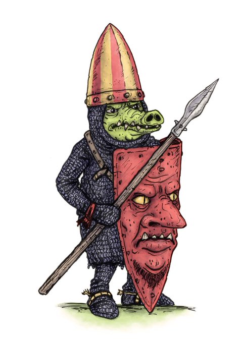 Goblin warrior with face shield! Shield looks a little more intimidating than the wielder... Decided to add colour to one of my fave sketches. #dndart #characterdesign