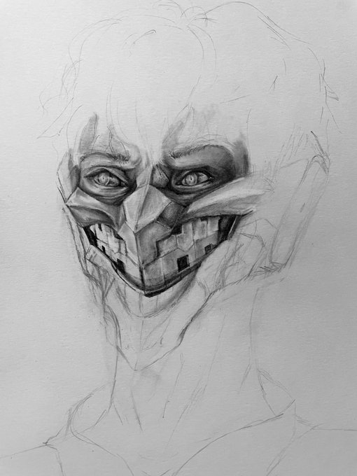 Made a bit of a start on some new fanart. I can’t help but feel like this mask looks like it has massive buck teeth. 😂 #wip #TRIBENINE #corpsehusbandfanart