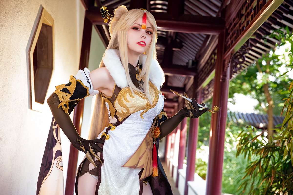 There are more shots I really loved from my #Ningguang #GenshinImpact #cosplay from last summer <3. I have one more Genshin cos in the pipeline ^.^ photos by @meermiau edits by me costume 1/3 delusion pipe, make up model by me #genshinimpactcosplay #ningguangcosplay