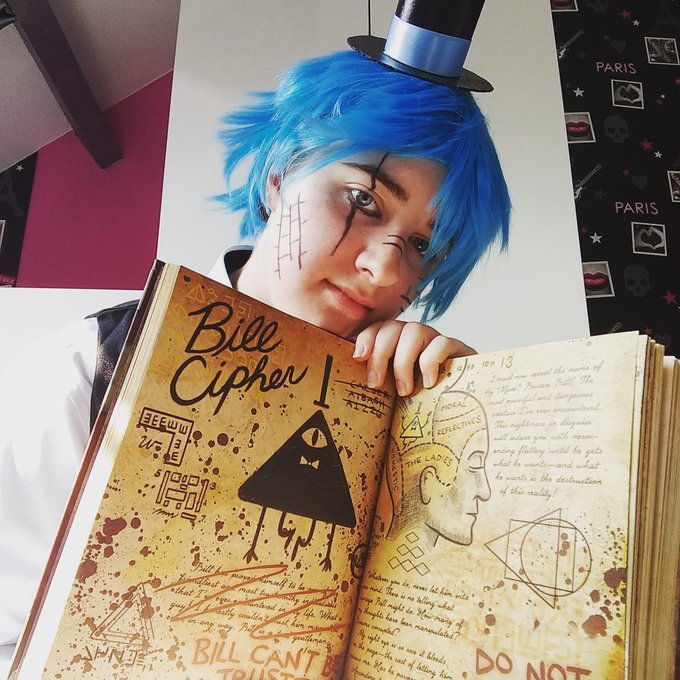I'm bored... And have to remove every #book from my shelves for the Big cleaning ! I found my #GravityFalls journal, and it reminded me of this #cosplay of #willcipher, #billcipher's Brother