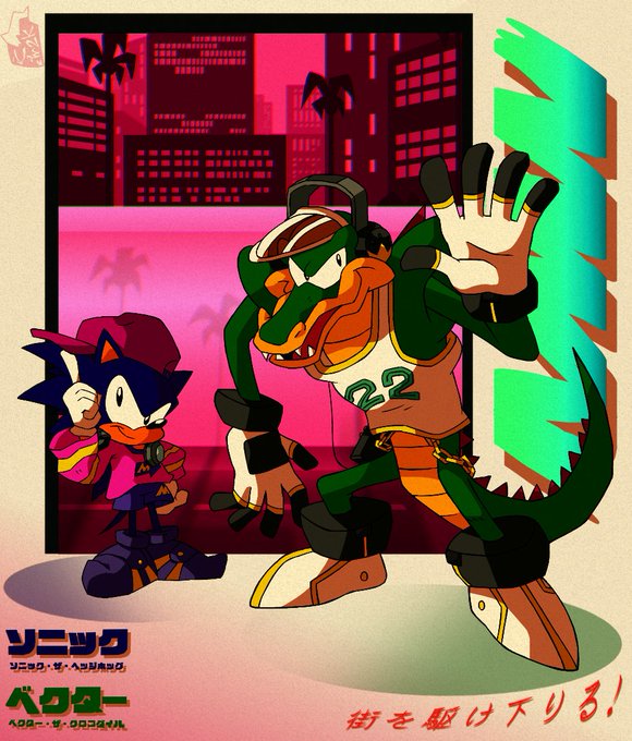 "Rush down the city" This drawing happens to have one character outfit that recently became my favourite. 07.01.23 #SonicTheHedgehog #VectorTheCrocodile #fanart