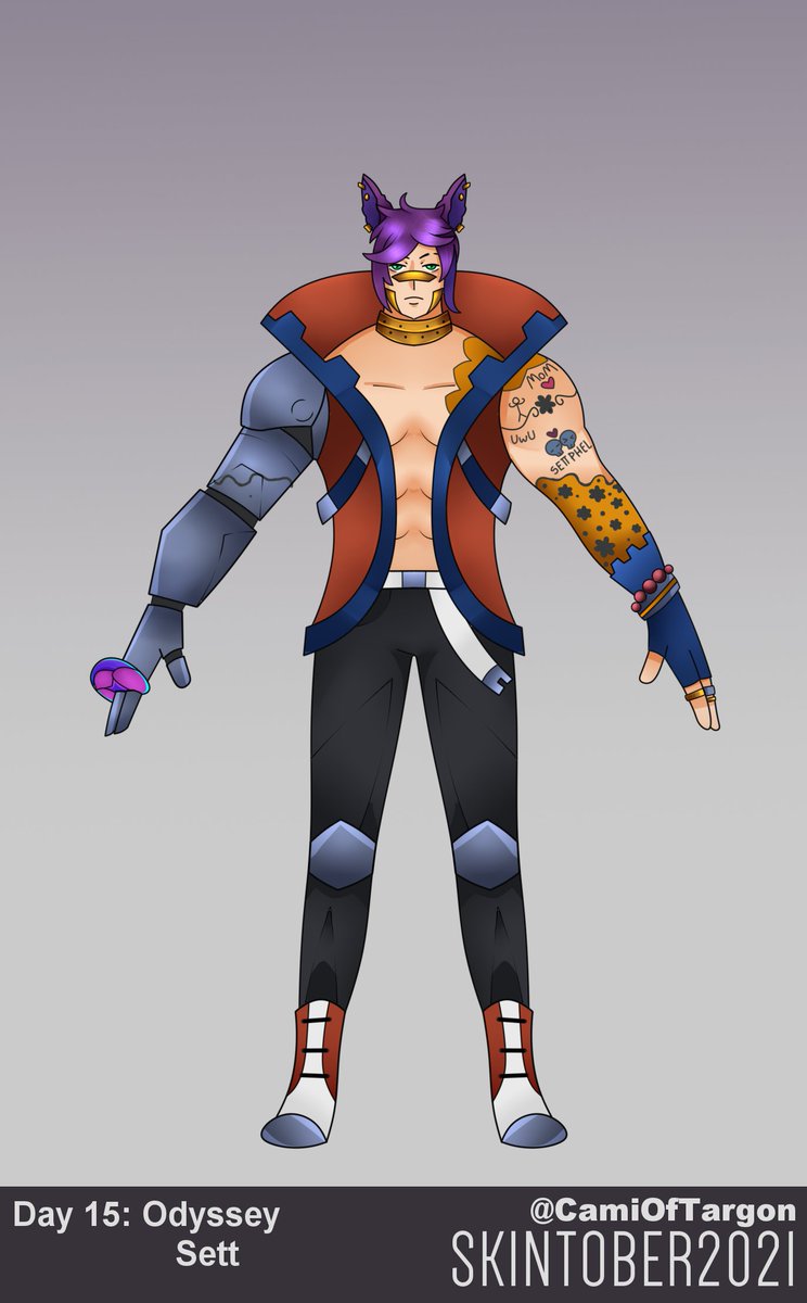 Day 15 - Odyssey: Sett Wanted throughout the galaxy, the only thing this bandit wants is to save Aphelios from the hands of Aatrox. #ArtofLegends #LeagueOfLegends #conceptober #skintober2021 #Skintober #Settphel