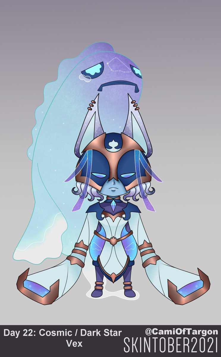 Day 22 - Cosmic/Dark Star: Vex Cosmic Lonely Vex, Based on the star Fomalhaut, Piscis Austrinus, I cast the shadow like a celestial fish crying. #ArtofLegends #LeagueOfLegends #conceptober #skintober2021 #Skintober #vex