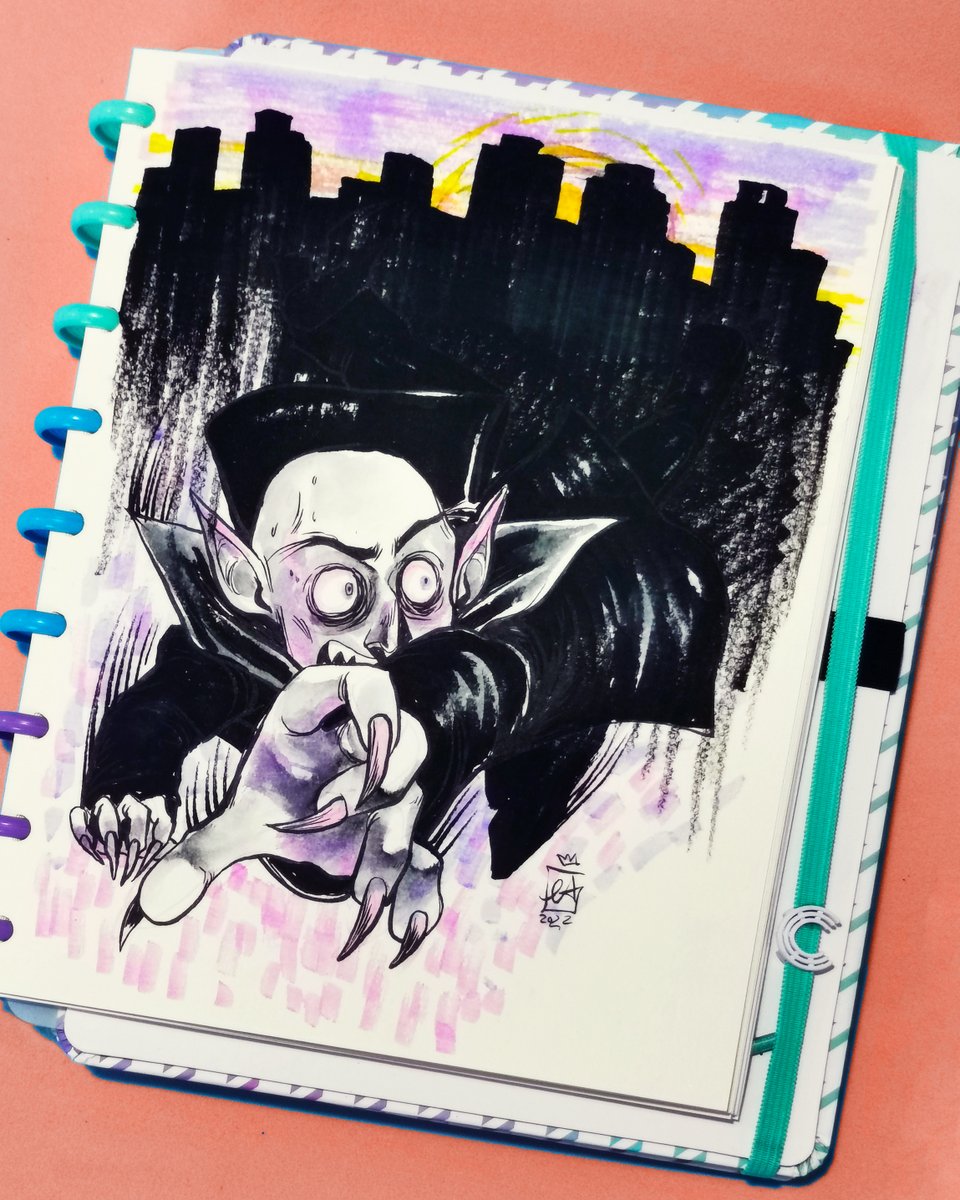 ✒️This year I decided to just get the original #Inktober2022 list. I didn't invent lists and I won't make 2 at the same time. Well, one day I had to calm down, right? ✏️Today's art: Gargoyle with my dear vampire hunter and tamer, Timberlly Tea. Let's put these OCs to the game!