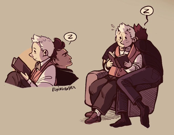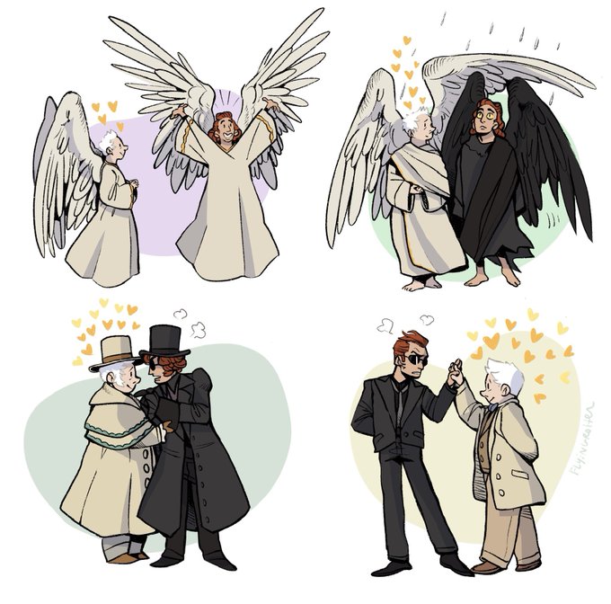 They stayed together in the Bookshop during quarantine Crowley slept through it while Aziraphale was re-reading his favorite books 📚 💛 #GoodOmens