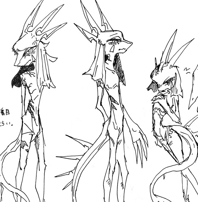 7 29 #人外版深夜の真剣お絵描き60分一本勝負 「アナタが考える天候を操りそうな人外」「スフィンクス」「骨から連想する人外」 15分遅れ参加でした 23/04/08 00:22