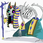 #人外版深夜の真剣お絵描き60分一本勝負 「アナタが考える天候を操りそうな人外」「スフィンクス」「骨から連想する人外」 15分遅れ参加でした
