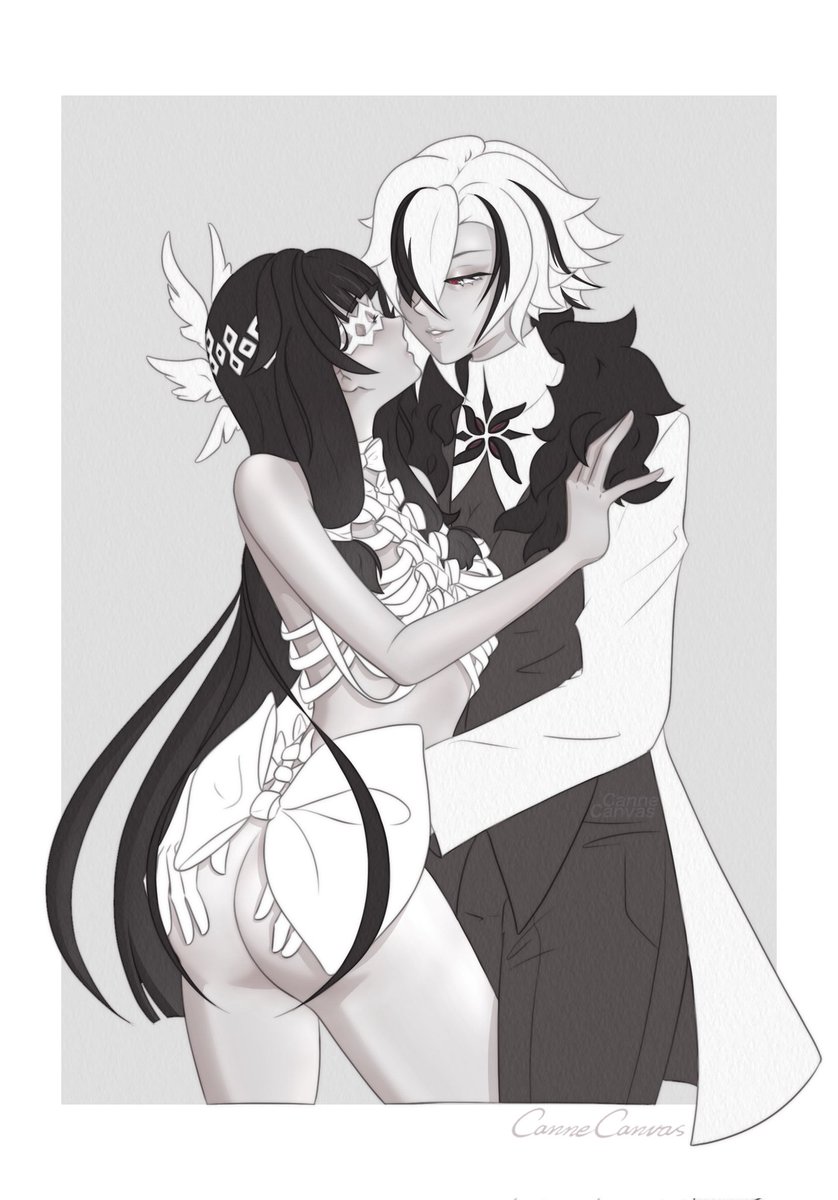Dance with the devil ~ I'm literally so exhausted recently that I can hardly get myself to draw the things I want to draw so finishing this felt quite good hehe #ๅ็ฅ #Damselette #Arlecchino #columbina #arlebina #genshinimpactfanart