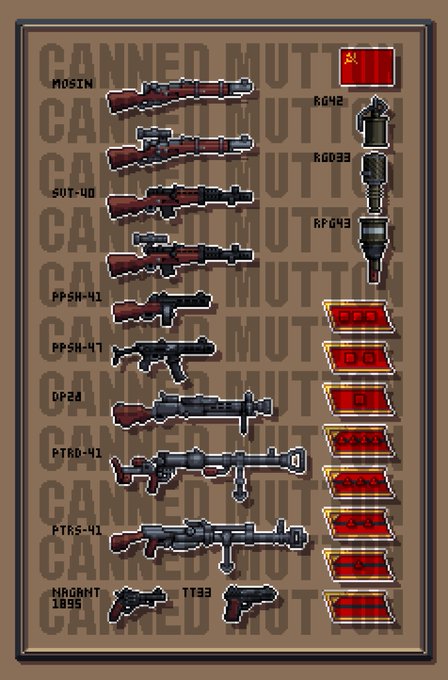 Weapons used by the Soviet Army during World War II #ドット絵 #Pixel #pixelart