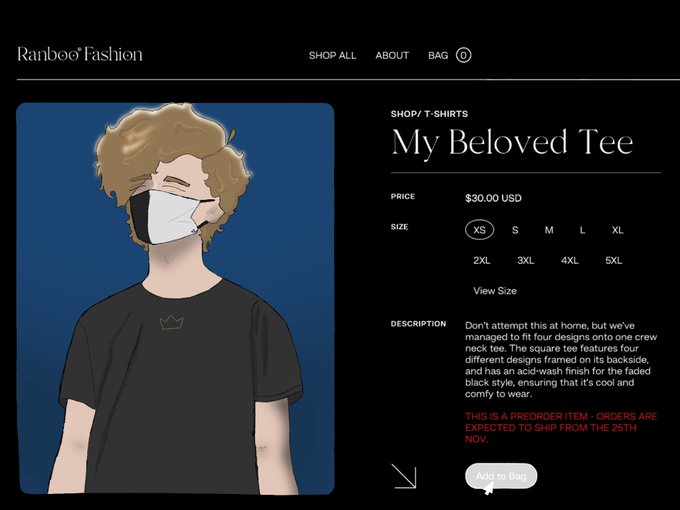 My beloved tee + add to bag button that works😍 /LH I’m trying to make hair look more like ✨hair✨ @ranbooart #ranboomerch #ranboofanart