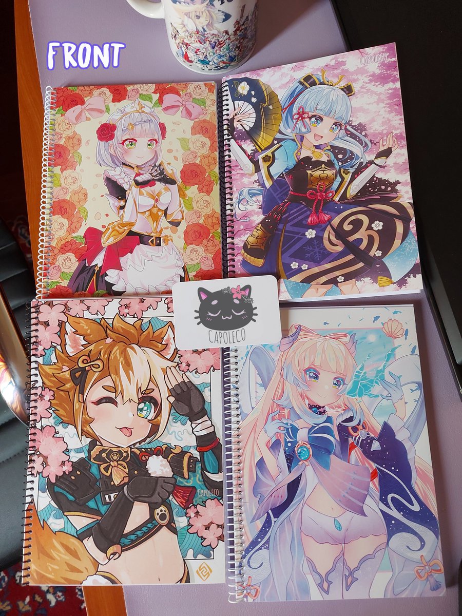PREORDER | Genshin Impact Notebooks - Free shipping. -Spiral notebook -A5 size -Soft cover: 400 gr cardboard -40 pages - 100 gr each -White sheets ------- Period: One week ------- Link below #GenshinImpact #Gorou #Ayaka #Noelle #kokomi #genshinimpactfanart