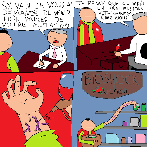 Pour ce jour 11 d'#inktober2021 #adrinktober2021, avec le mot "mutation", petit strip sur le thème de #gaming et de la #GrandeDistribution pour un max de funnnnnnnnnnnn.........