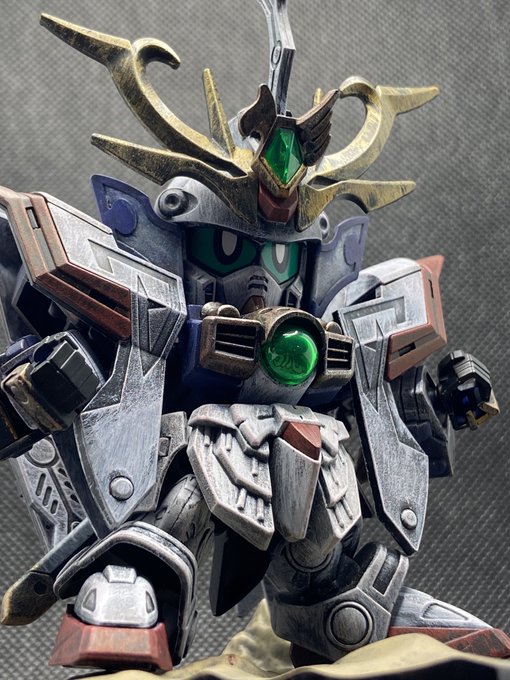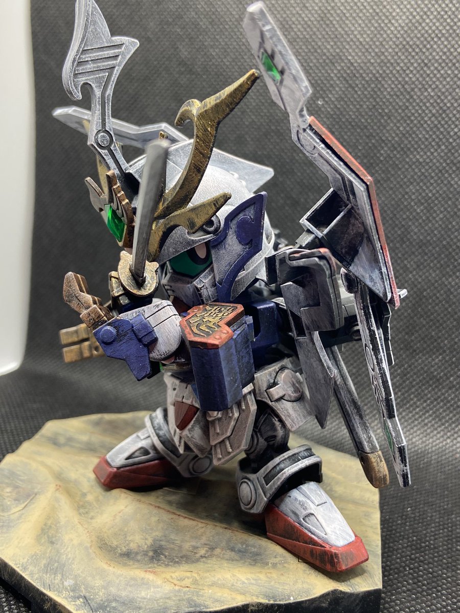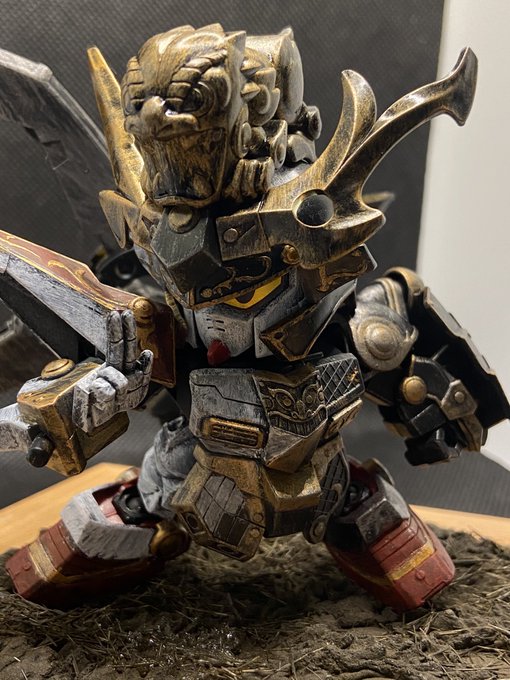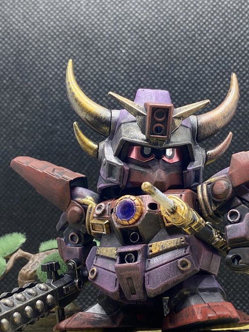レジェンドbbのバーサルナイトガンダムの塗リメイク完成しました。 突然のドライブラシブーム到来。金属をひたすら塗りたい病です笑 #ガンプラの画像を貼るとRTされると聞いて #俺SD作ってるぜ #ガンプラ