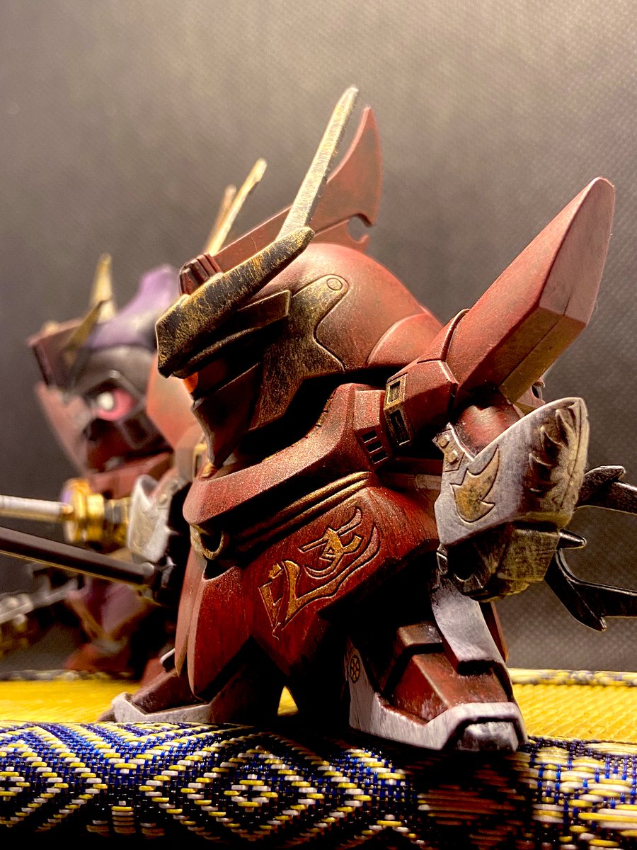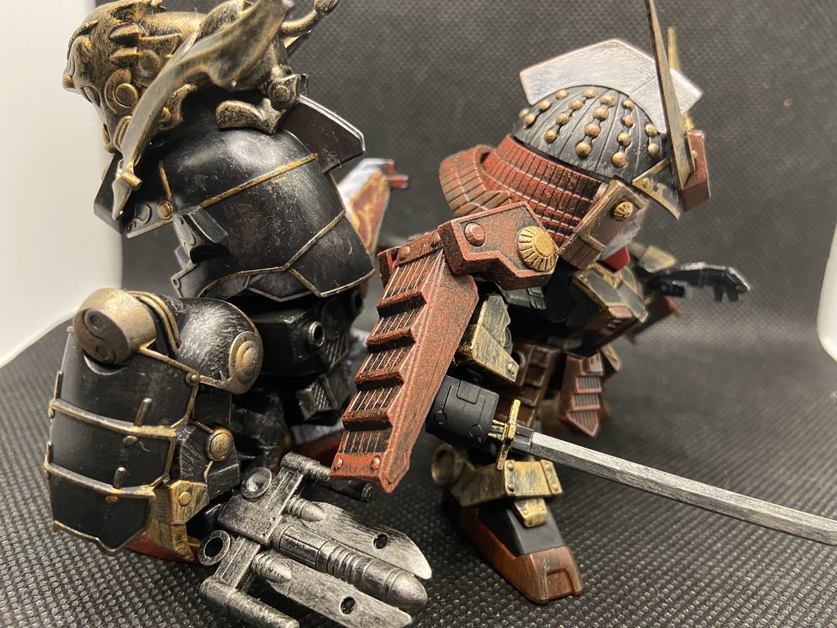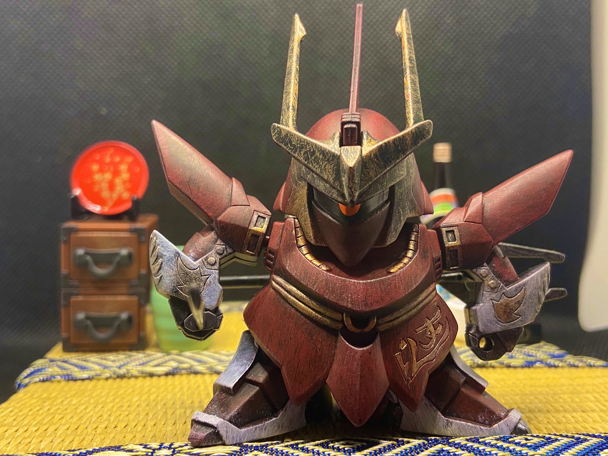 続いて武者漣飛威(ムシャサザビー)も完成‼️ この武者シリーズ本当に好き。次このシリーズではケンプファーを塗りたい。闇将軍復活まであと3体! #俺SD作ってるぜ #ガンプラの画像を貼るとRTされると聞いて #BB戦士
