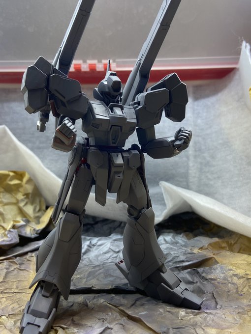 終始納得いかず投げ出したかったけど、何とか堪えて完走したエアブラシ被検体第一号です。 最後の最後で間違って古いトップコート缶を使ってしまうという痛恨のミスで、結構綺麗だった箇所にブシャァァァして台無しに。。。😭 ごめんねガルバルディ、もう僕は疲れたよ😇 #ガンプラ好きと繋がりたい