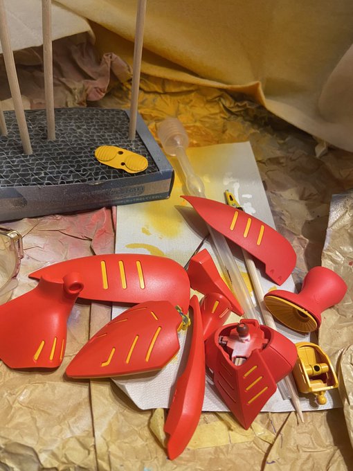 HGUCキュベレイmk2 完成しました☺️エアブラシ全塗装としては2作目、HGUCキュベレイをガイアノーツのブライトレッドとエヴァイエローで塗装しました。プルキュベも作りたいな。 #ガンプラの画像貼るとRTされると聞いて #ガンプラ好きと繋がりたい