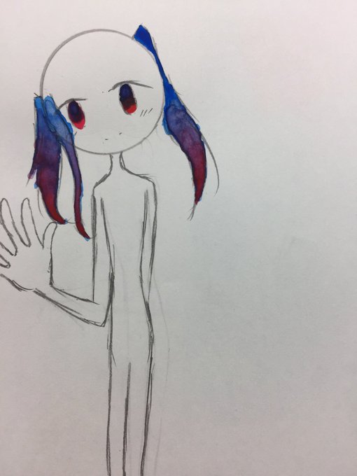 #オリ棒 #水彩 #グラデーション もっと綺麗な赤と青と紫になる予定だったんです! (言い訳)