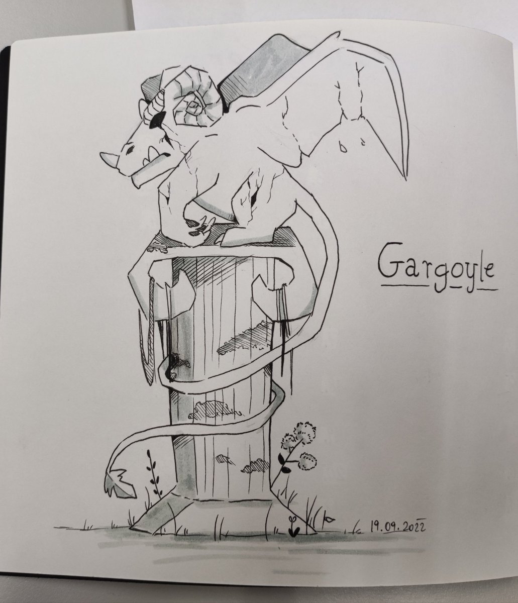 I am trying to get back from my hiatus by participating in Inktober. Funny thing is I drew a few days ahead already, but I am late on posting 🤣 #inktober2022 #inktober #inktobergargoyle #inktoberday1