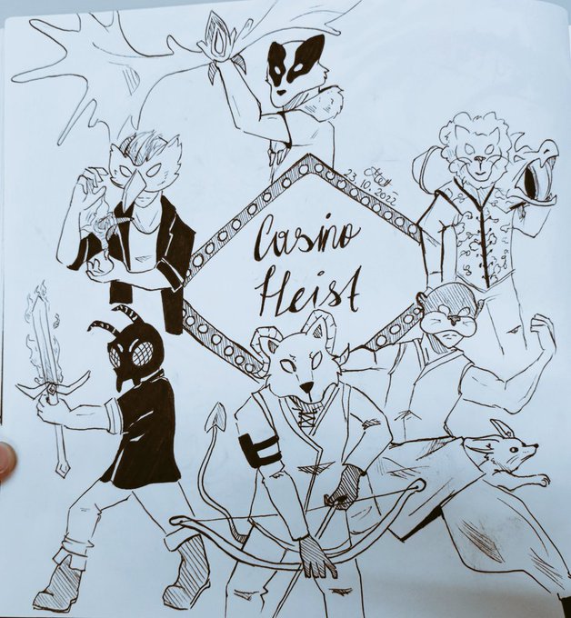 Today I can finally post it! The Inktober drawing for heist is my DnD group and their characters as they are about to rob a casino city! Can't tag all of them but I hope you like it! 😊 #inktober #inktober2022 #inktoberheist #inktoberday22 #inktoberheist #dndfanart