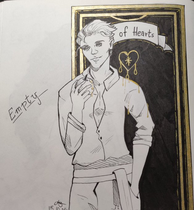 Today's Inktober drawing features one of my favorite Book Characters (and NPCs I played in my campaign): Jacks, the Prince of Hearts from #caraval Let's just say I thought of an "empty" card 😉 #inktober #inktober2022 #inktoberday14 #inktoberemptyday14 #caravalfanart