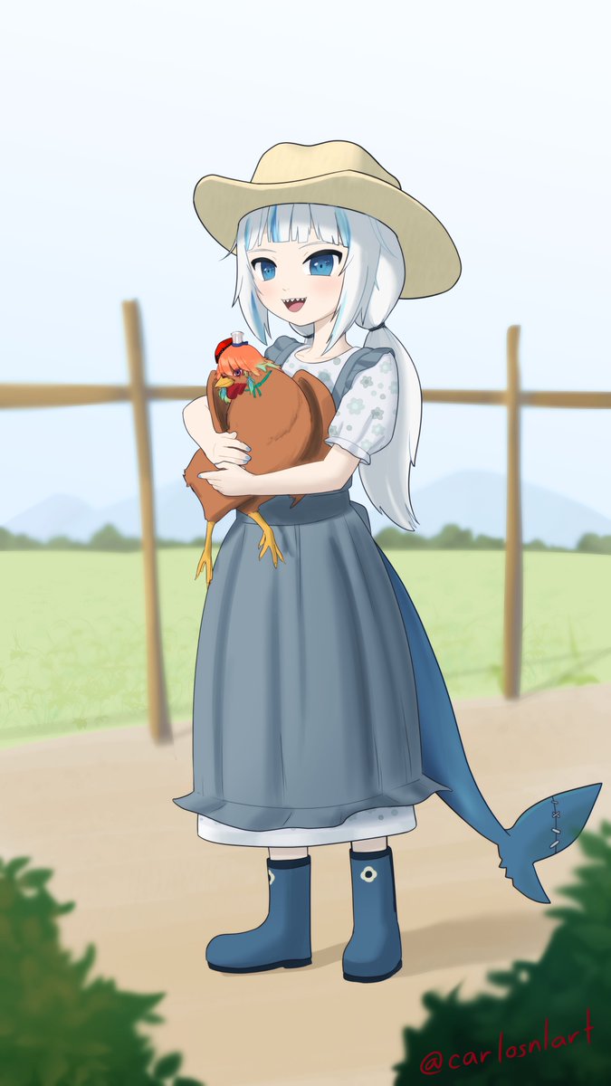Gawr Gura (Hololive). Outfit based on her sims 4 farm stream. Sketched this months ago and been slowly completing it. #gawrt #gawrgura #holoMyth #hololive