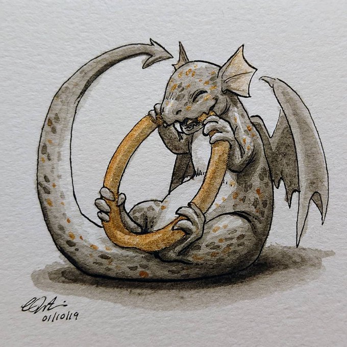 #Inktober Day 12: Dragon (it's hugging a pearl!) For more details see my Instagram post: instagram.com/p/B3igrpSjq0A/… #Inktober2019 #inktoberday12