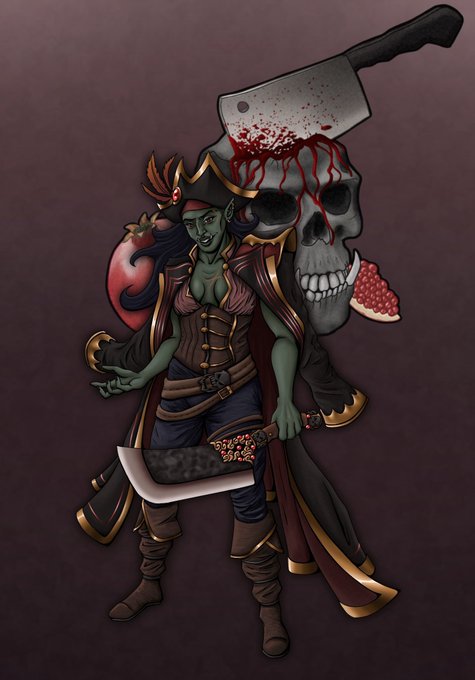 ☠️ Maxine Drake, the Dreadhorde Captain 🔪 Another deity from my pirate-themed #dnd setting! Maxine is a death god who holds domain over violence, cruelty, rebellion and blood #dndart #digitalart #pirate #procreateart #ttrpgart