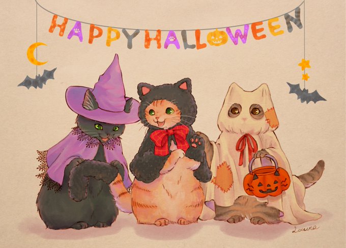 創作イラスト 仮装してハロウィンパーティへ🎃🐱 ブログ記事はこちら↓ ameblo.jp/laura-apelila/… #イラスト #絵 #絵描きさんと繋がりたい #可愛い #ハロウィン #halloween #猫 #ネコ #にゃんこ #猫好きさんと繋がりたい
