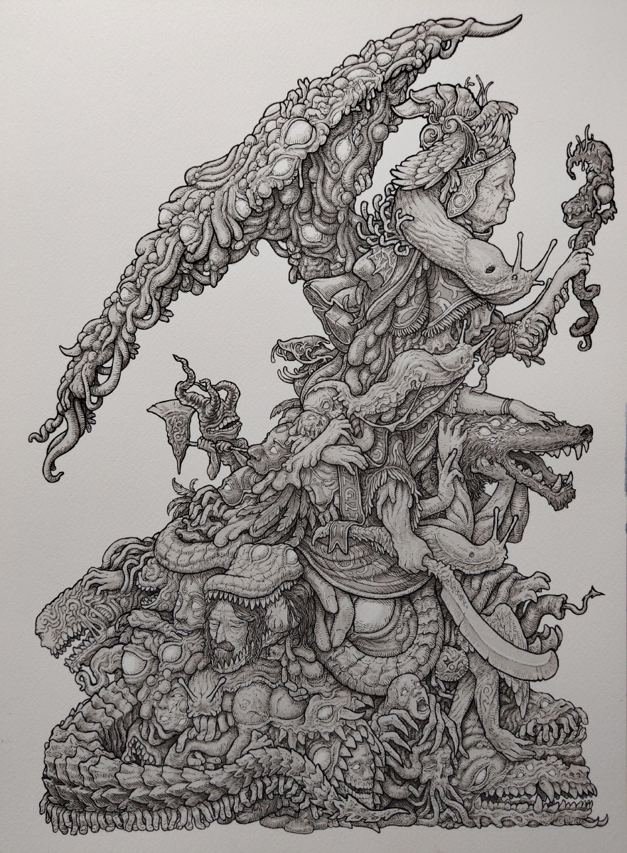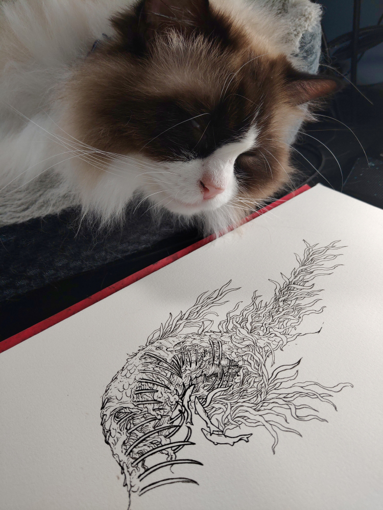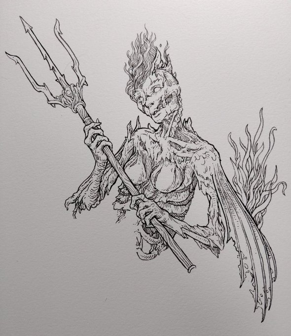 Hey #PortfolioDay, I'm Carson, a Chinese-Canadian illustrator making dark fantasy/sci-fi illustrations in ink and watercolour with a brush. All of my work is made up on the spot and streamed on twitch.tv/carsondrewit