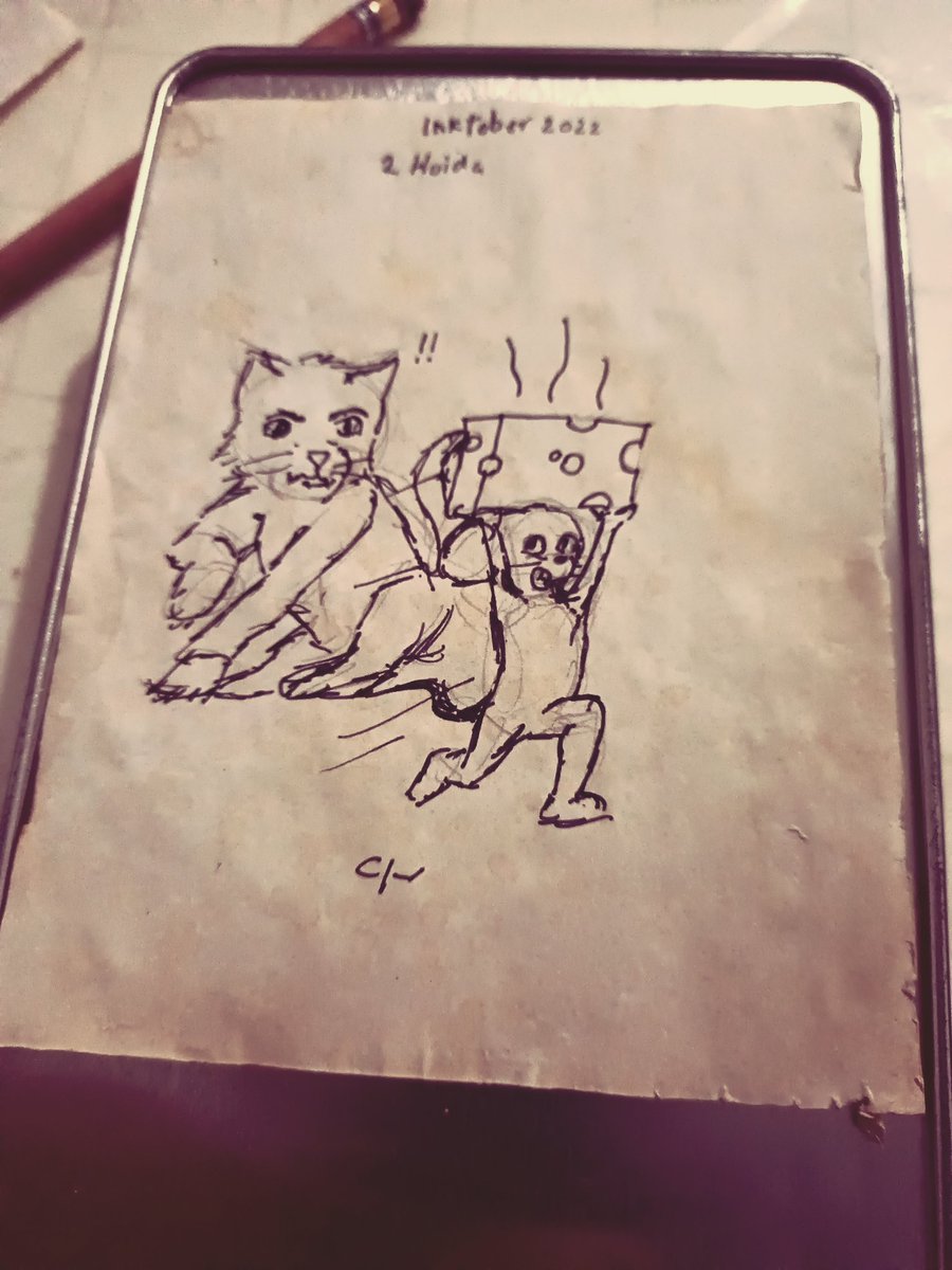 1 2 El #Inktober de hoy es huida:p #raton #mouse #queso #chese #gato #cat #draw #dibujo 22/10/03 12:41