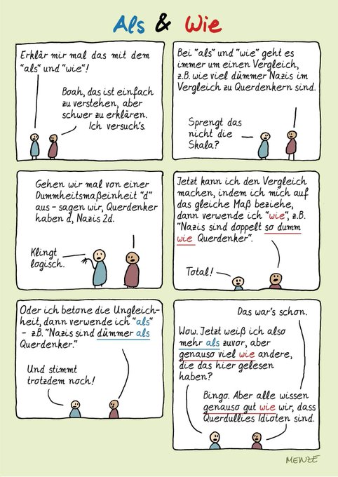 Nachdem nun mehrfach der Wunsch nach einem Als/Wie-Comic geäußert wurde - voila! B! Genauso gerne Kaffee ausgeben wie Grammatik lernen: paypal.me/Cartoostrophal