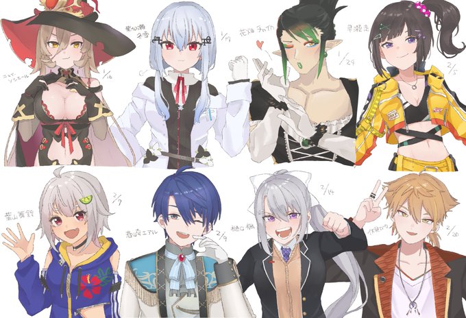 #にじさんじ五十音順に描いたら童田明治の時には画力上がってる説 ③ ニュイ・ソシエール〜夢月ロア(1/16〜8/11) 新人さん含めてあと14人!!!🏃