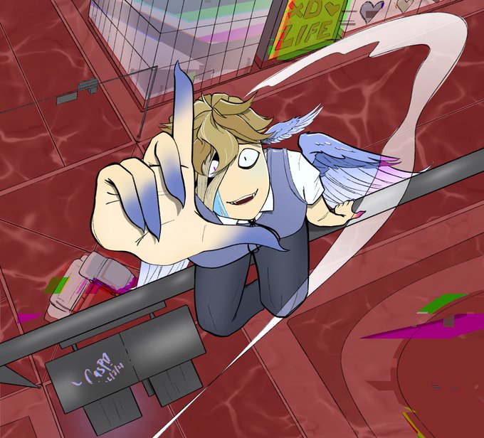 //eye contact “it’s coming for you.” - - the finished piece of the #genlosscollab + lineart by @todcicle and coloring by @escriptik ! + rts are awesome :D - [#ranboofanart #genlossfanart #generationloss #ranboo @ranbooart]