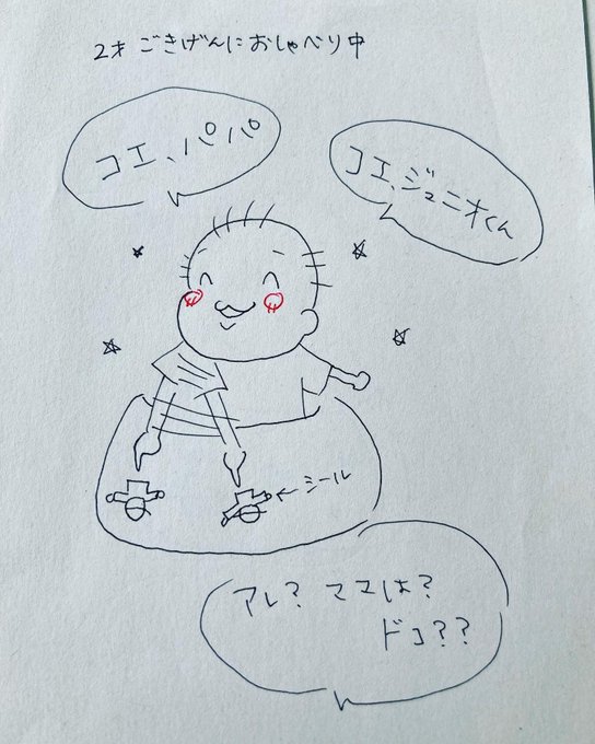 0 11 うろたえるな。安心しろ。 それはシールだ。 私はココだ。目の前にいる。 よく喋るジュニオ2歳 #育児漫画 #育児日記 #育児絵日記 22/08/09 09:24