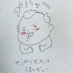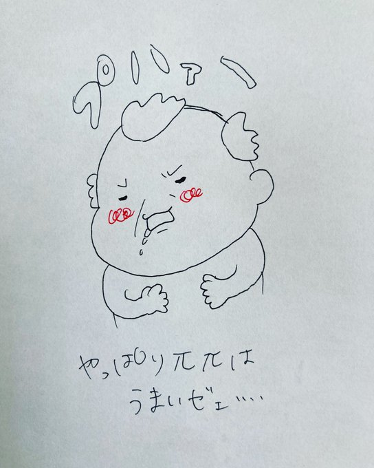 でっかい仕事(吸いにくいπ)を無事に終えた(なんとか吸い切った)職人(泣き声1つでさまざまな気持ちを表す赤様)が美酒(π)をいただいた後の顔。 できたほうれい線がその凄まじさを物語っている #育児漫画 #育児日記 #育児絵日記 #赤ちゃん
