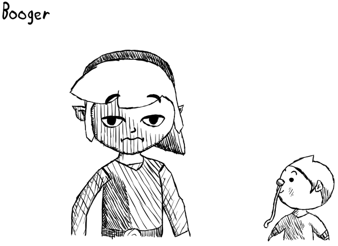Well, what came to mind here was the little guy on the right from Wind Waker, that always has some snot hanging down. Link is, in turn, a reflection of my feelings about this prompt, lmao. Why is this here? #Inktober #Inktober2022Day23 #InktoberBooger