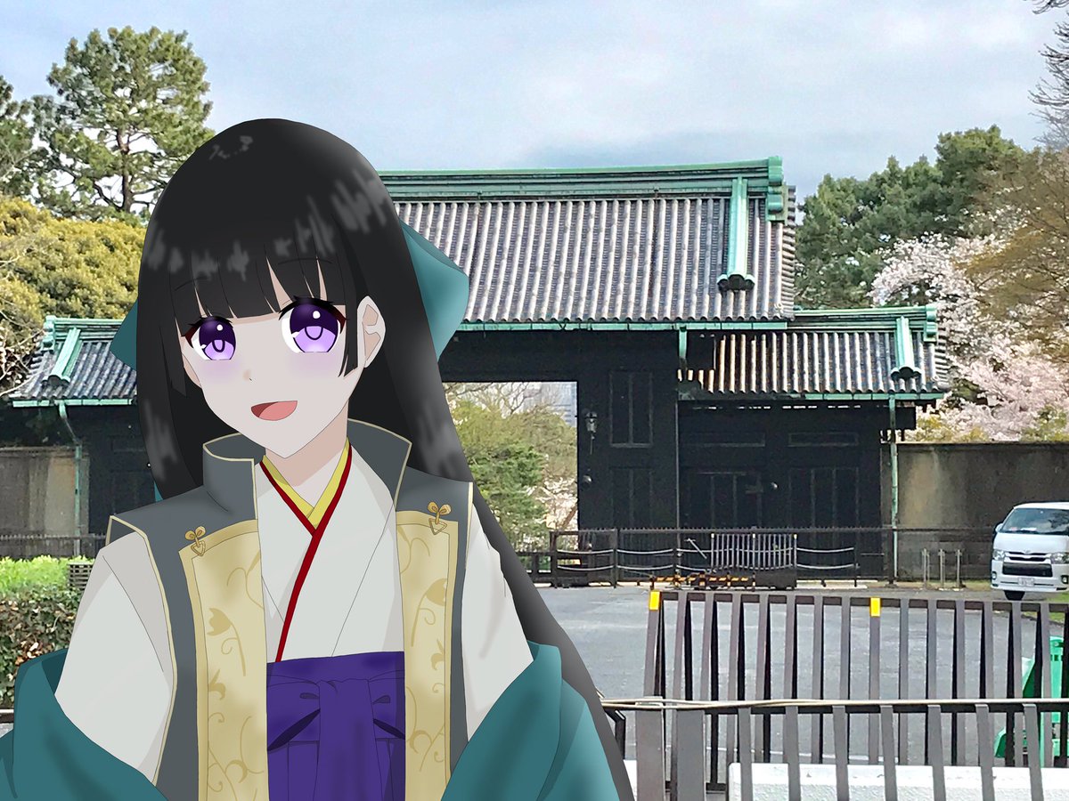 せっかく皇居の桜見に行ったから江戸城さんを写真に描き足して江戸城さんと桜見に行った感じにしたわ #城プロRE #城プロ絵