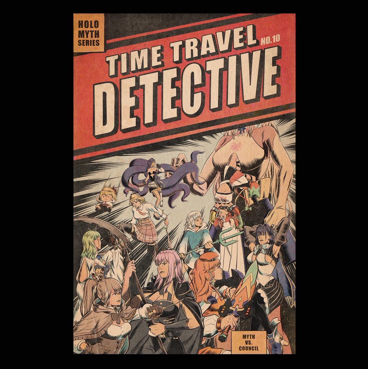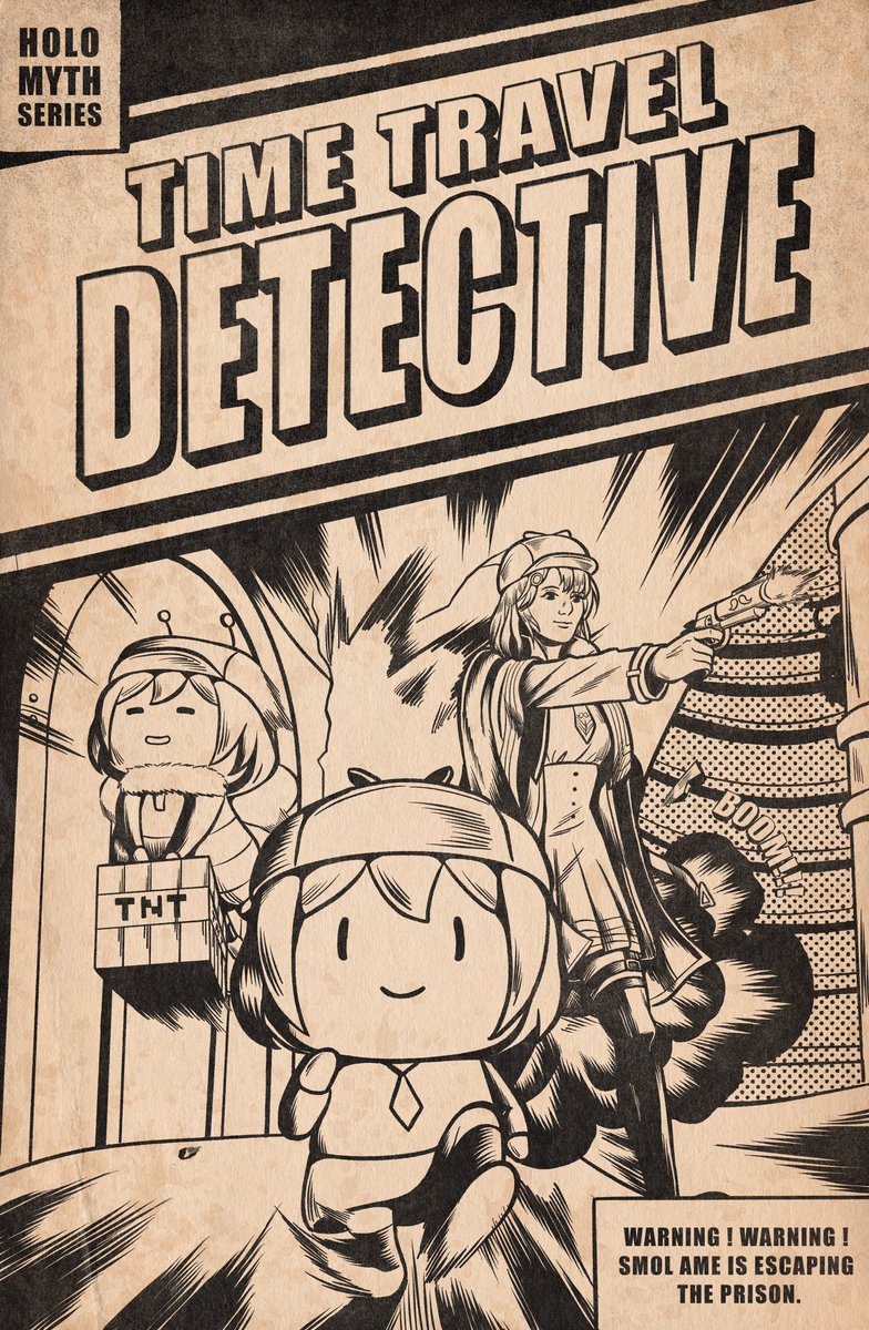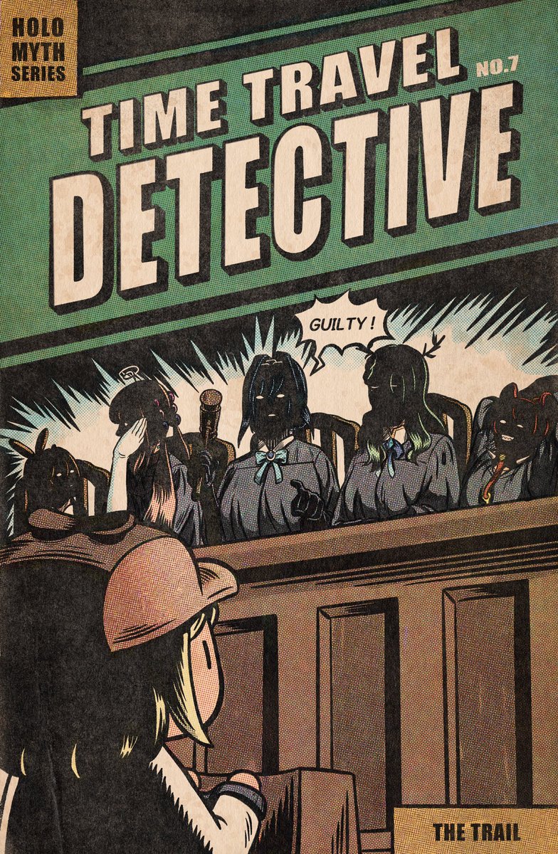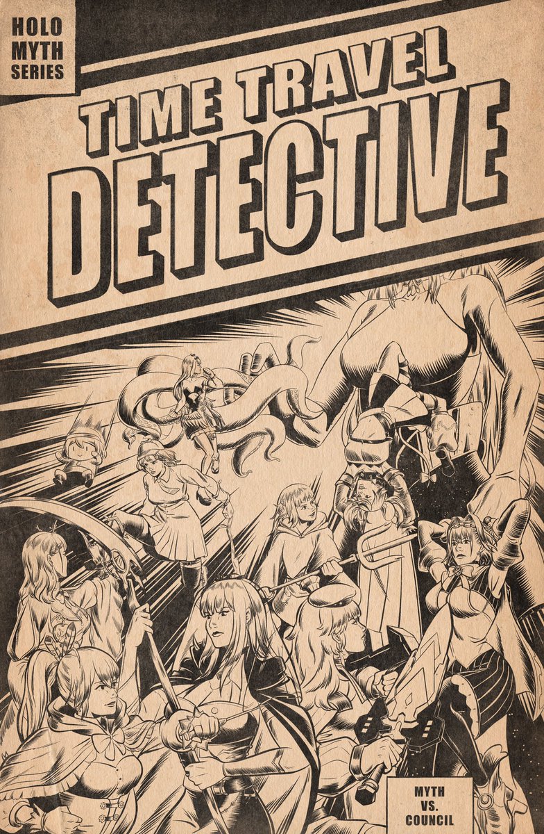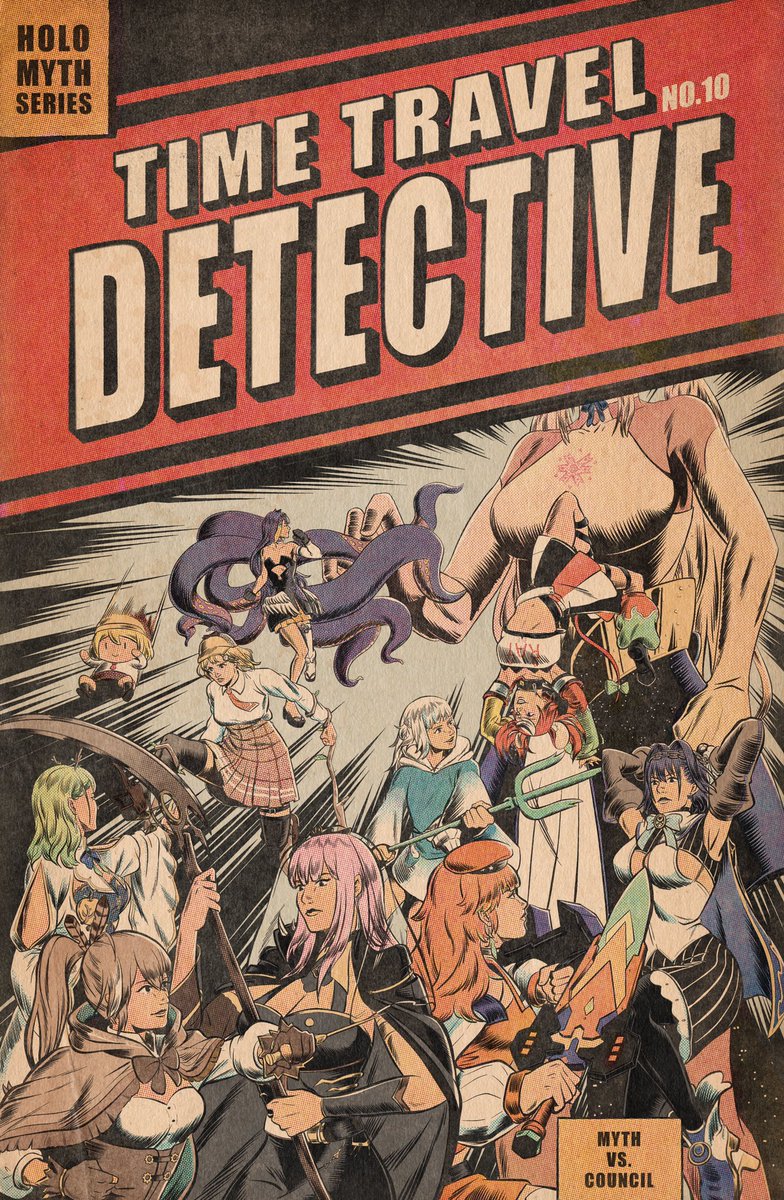 Hololive Myth vs council This may be the last Time Travel Detective cover poster. Had so much fun drawing them. #artsofashes #callillust #ameliart #gawrt #inart #drawmei #kronillust #illustraybae #galaxillust #finefaunart #fanart #hololiveen